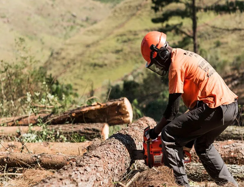 • Fácil de segurar– Empunhadura dianteira em ângulo permite maior conforto e segurança, proporcionando uma posição de trabalho mais ergonômica.• Freio de corrente por inércia– Eficaz freio de corrente com acionamento por inércia.